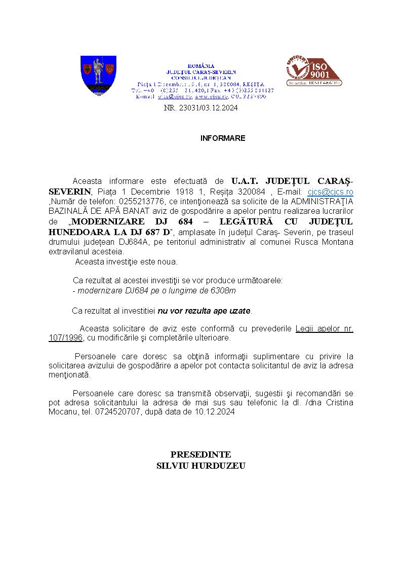 În vederea eliminării unei avarii apărute spontan la rețeaua de apă, SC AQUACARAȘ SA anunță sistarea furnizării...