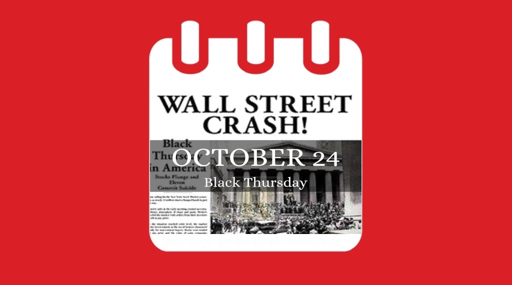 1929: Bursa din New York se prăbușește. Această zi a rămas în istoria Bursei cu numele de „Joia Neagră”.