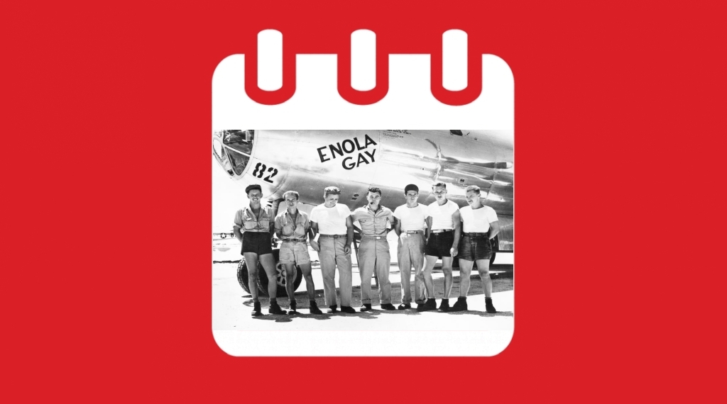 1945: Al doilea război mondial: Bombardierul american Enola Gay a lansat prima bombă atomică, denumită Little Boy, asupra orașului japonez Hiroșima. În jur de 70.000 de persoane sunt ucise instantaneu, și câteva zeci de mii de oameni mor în anii următori de arsuri și de radiații.