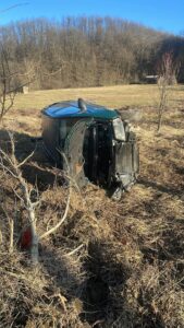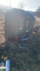 Un șofer a pierdut controlul asupra autoturismului, iar mașina a părăsit partea carosabilă și s-a răsturnat, ajungând cu roțile în sus pe câmpul de la marginea drumului.