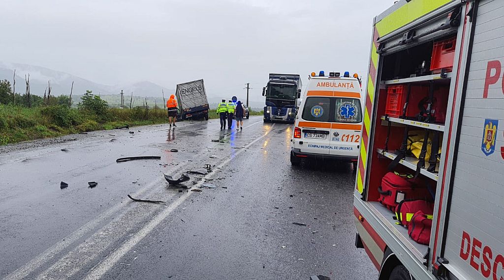 La fața locului acționează 1 echipaj elicopter SMURD, 4 echipaje de la Detașamentul de pompieri Caransebeș, cu o ambulanță SMURD, 1 descarcerare, 1 autospecială pentru stins incendii și 2 echipaje medicale SAJ.