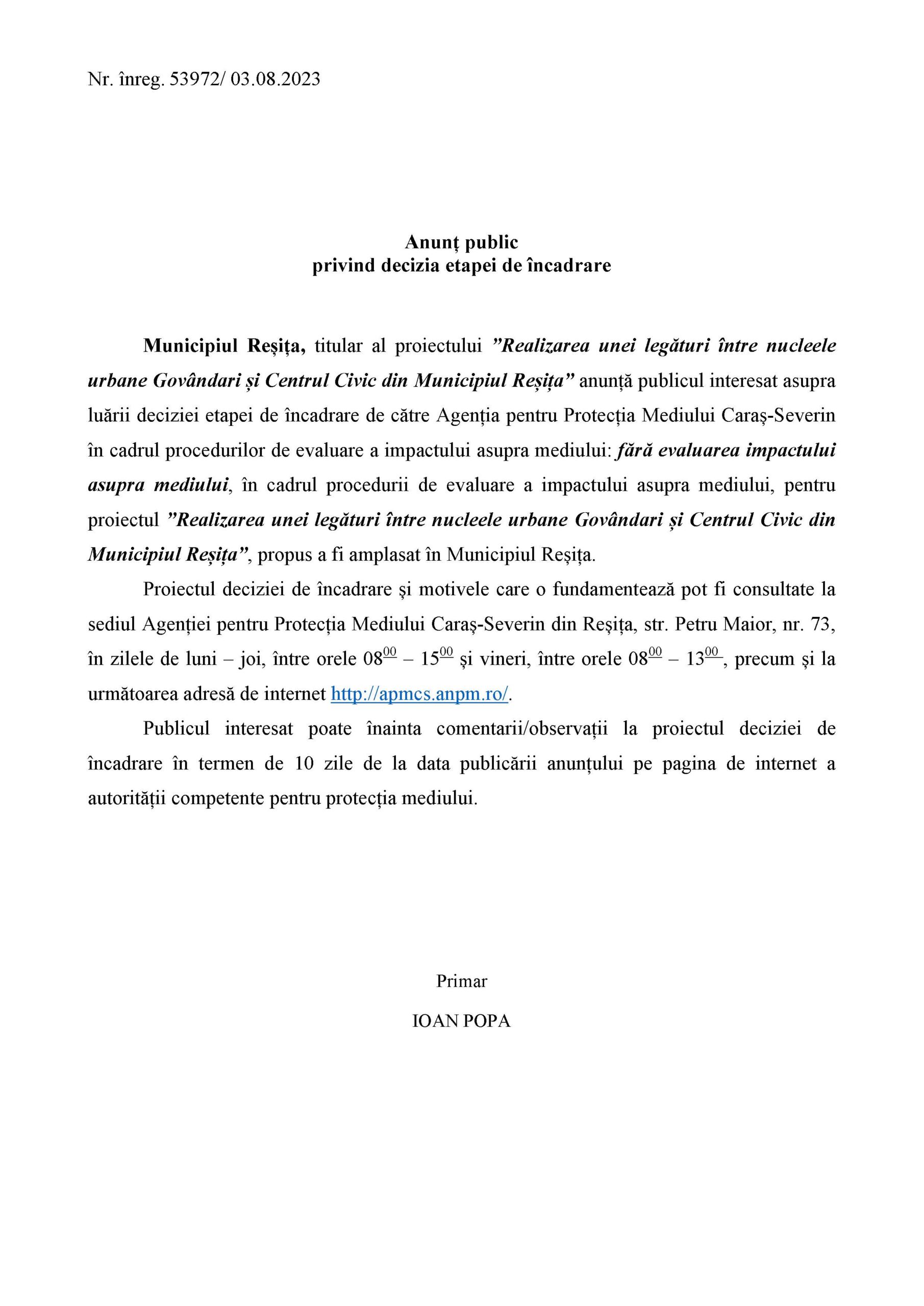 În vederea eliminării unei avarii apărute spontan la rețeaua de apă, SC AQUACARAȘ SA anunță sistarea furnizării...
