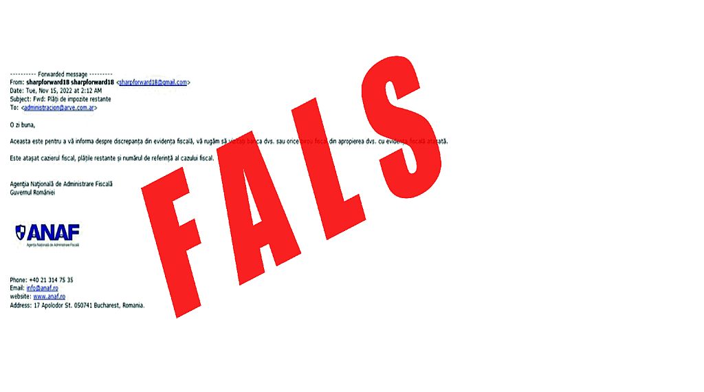 ANAF atenționează asupra unei noi campanii de mesaje false, transmise în numele instituției, prin care contribuabilii sunt informați despre ”discrepanțe în evidența fiscală”.