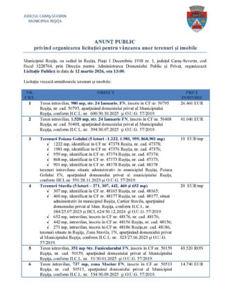 Licitație pentru vânzarea unor terenuri și imobile