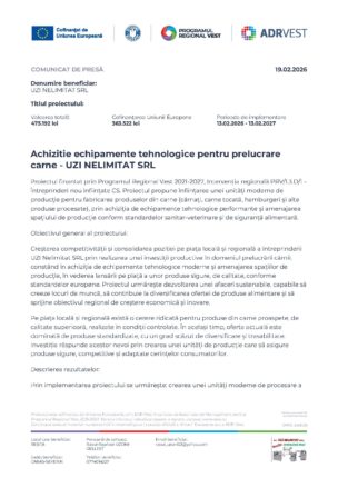 Proiect „Achiziție echipamente tehnologice pentru prelucrare carne” – UZI NELIMITAT SRL