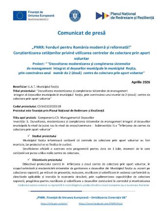 02APR. Dezvoltarea modernizarea și completarea sistemelor de management integrat al deșeurilor municipale (C3I1A0122000118)