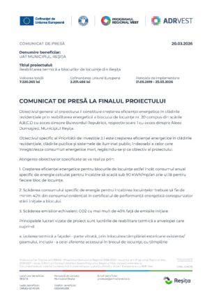 Reabilitarea termică a blocurilor de locuințe din Reșița – SMIS: 324098