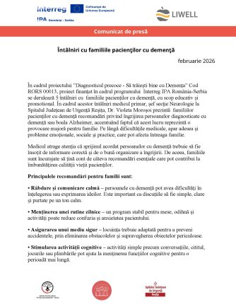 Proiect „Diagnosticul precoce – Să trăiești bine cu Demența”
