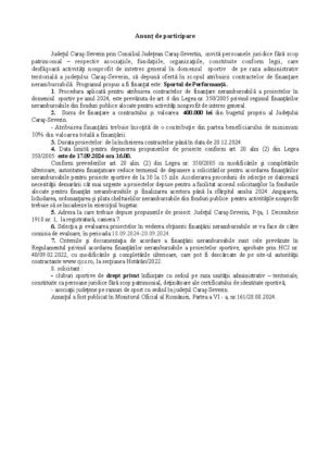 Anunţ de participare Județul Caraș-Severin prin Consiliul Județean Caraș-Severtin, invită persoanele juridice fără scop patrimonial – respectiv asociaţiile, fundaţiile, organizaţiile, constituite conform legii, care desfășoară activități nonprofit de intetres general în domeniul sportiv de pe raza administrativ teritorială a județului Caraș-Severin, să depună ofertă în scopul atribuirii contractelor de finanţare nerambursabilă. Programul propus a […]