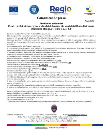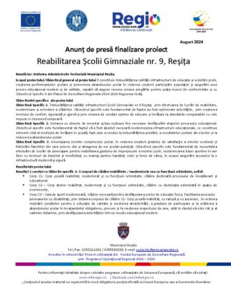 Finalizare proiect – Reabilitarea Școlii Gimnaziale nr. 9, Reșița