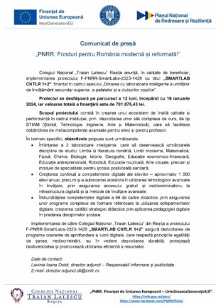 Implementarea proiectului „SMARTLAB CNTLR 1+2”