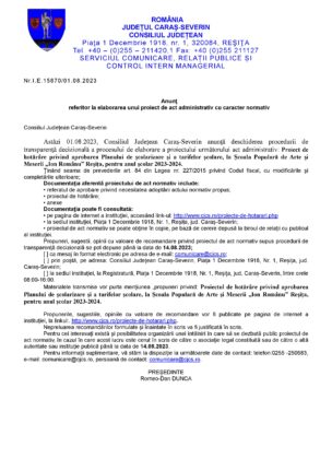 MUNICIPIUL REȘIȚA anunță publicul interesat asupra depunerii solicitării de emitere a acordului de mediu pentru proiectul ‘‘EXTINDEREA STOCULUI LOCATIV PUBLIC PENTRU CONSTRUCȚII DE LOCUINȚE SOCIALE ÎN ZONA URBANĂ FUNCȚIONALĂ NR.4 – CARTIER STAVILA ȘI MARGINEA PENTRU POPULAȚIA DIN ZONELE URBANE MARGINALIZATE – ETAPA II’’, propus a fi amplasat în nordul cartierelor Stavila și Marginea, fostă […]