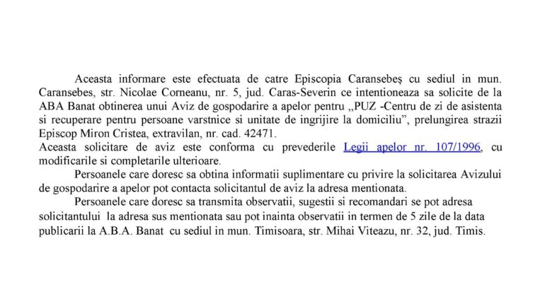 În ședința ordinară a Consiliului Județean Caraș-Severin din data de 13.07.2023, a fost adoptată: Hotărârea Consiliului Județean Caraș-Severin nr. 179/13.07.2023 privind neexercitarea de către judeţul Caraş-Severin, prin Consiliul Judeţean Caraş-Severin, a dreptului de preempţiune la vânzarea imobilului parte din Ansamblul urban ”Zona Rânduri” situat în municipiul Reșița, str. Rândul III, nr. 65A, județul Caraș-Severin. Consultarea […]