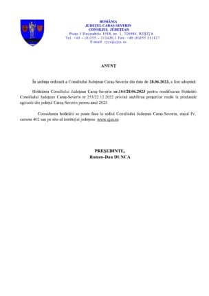 Hotărârea adoptată în ședința CJ din 28.06.2023