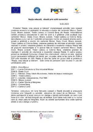 Concursul „Orașul meu intercultural” și-a desemnat câștigătorii la secțiunea fotografie. Cinci tineri au descoperit, prin intermediul obiectivului, dimensiunea interculturală a municipiului Reșița.