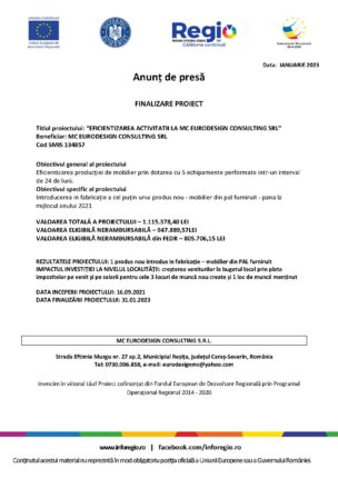 Finalizare proiect “Eficientizarea activității la MC Eurodesign Consulting SRL”