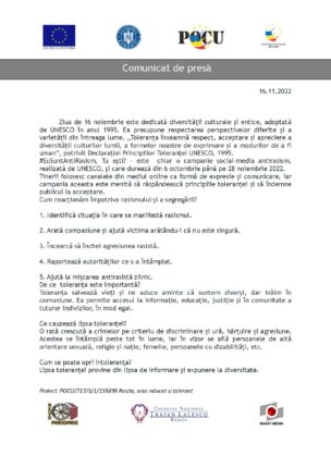 În cadrul proiectului „Reșița, oraș educat și tolerant”, în fiecare săptămână se derulează activități de voluntariat, cu mai multe componente, în cadrul cărora se promovează toleranța, acceptarea celor diferiți, dar și diversitatea etnică, religioasă și culturală.