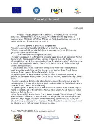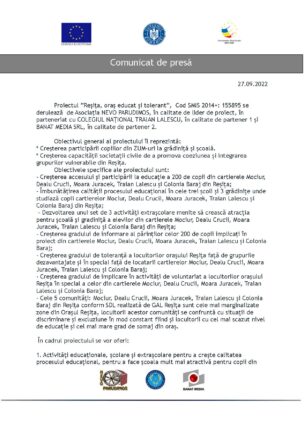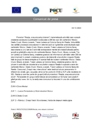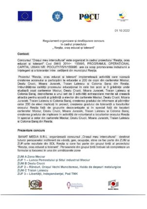 În acestă perioadă se derulează la Reșița un concurs de fotografie, eseu, desen sau film. Lunar, în cadrul concursului, se alege un domeniu, iar tema este legată de multiculturalitate, toleranță, voluntariat. Concursul se numește „Orașul meu intercultural” și se derulează în cadrul proiectului “Reșița, oraș educat și tolerant”, finanțat prin Programul Operațional Capital Uman.
