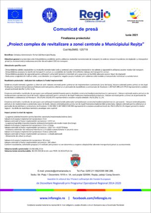 Proiect complex de revitalizare a zonei centrale a municipiului Reșița