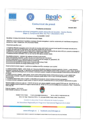 Anunț finalizare proiect Bloc B36