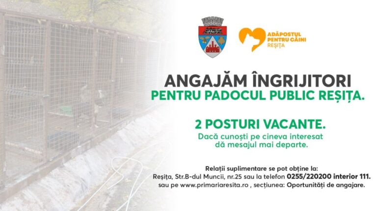 Primăria Reșița caută două persoane pentru posturile de îngrijitor animale în cadrul Padocului Public. Dacă iubești animalele și vrei să contribui la îngrijirea lor zilnică, ai acum șansa de a face parte din echipa padocului. Detalii despre condițiile de angajare și actele necesare pot fi găsite pe site-ul Primăriei Reșița, la secțiunea Concursuri. https://www.primariaresita.ro/…/concursuri- Pentru […]