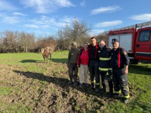 Pompierii din Reșița au intervenit în satul Bărbosu, comuna Ramna, pentru salvarea unei bovine căzute într-o fântână adâncă de aproximativ 7 metri.