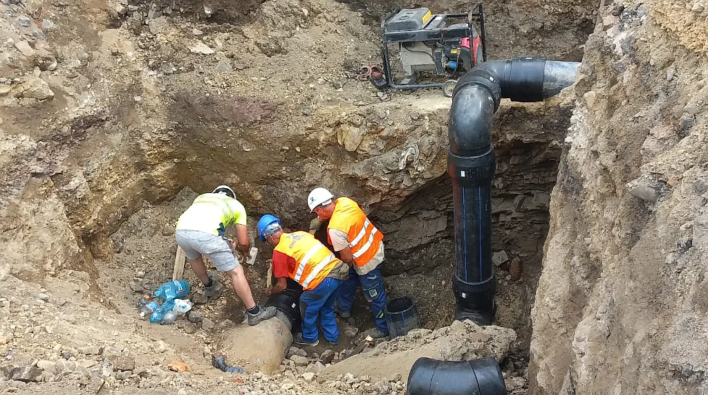 Intervențiile au început joi după-amiază, 10 iulie, și s-a lucrat inclusiv sâmbătă, în două schimburi. Aquacaraș a asigurat constructorului sprijin total — forță umană, utilaje și asistență tehnică — pentru finalizarea rapidă a lucrării. Luni a fost decolmatat primul tub, iar marți, la ora 19:30, s-a finalizat și al doilea. Miercuri, când dl viceprimar a fost cu presa pe șantier, echipele realizau deja cuplările la rețeaua existentă și pregăteau închiderea și compactarea terenului.