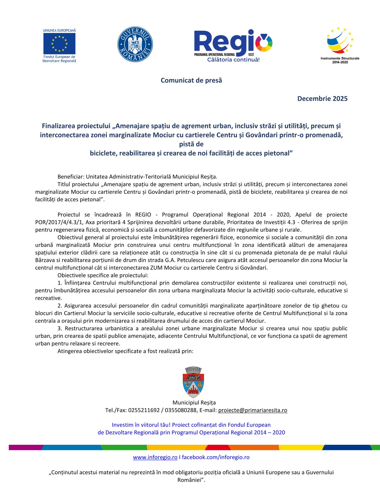 În vederea eliminării unei avarii apărute spontan la rețeaua de apă, SC AQUACARAȘ SA anunță sistarea furnizării...