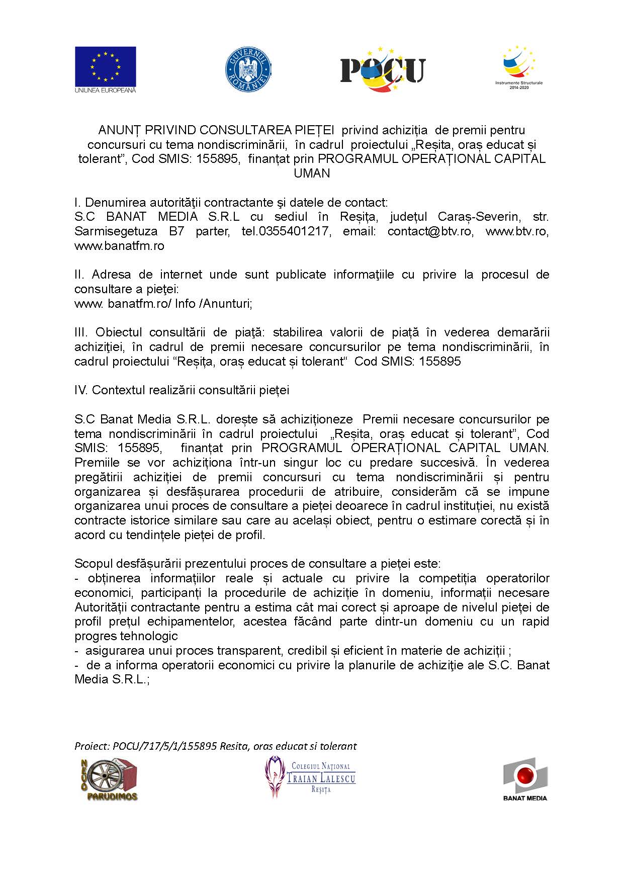 25OCT. Consultarea pieței privind achiziția de premii pentru concursuri Post Author: Cornelia Dunăreanu