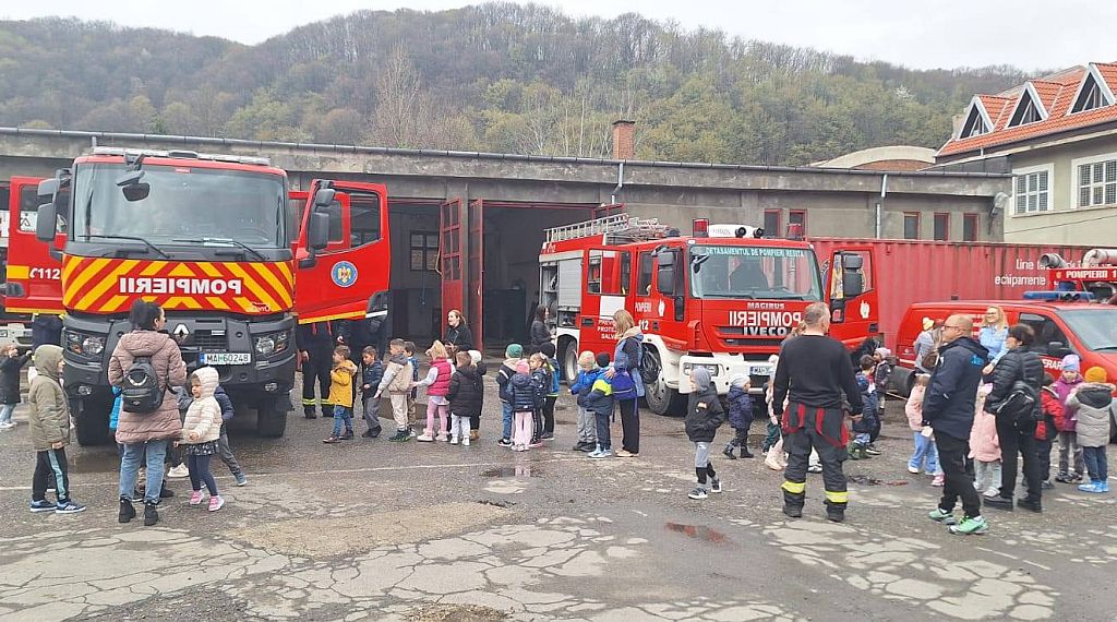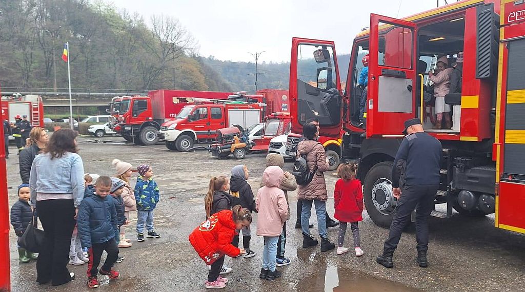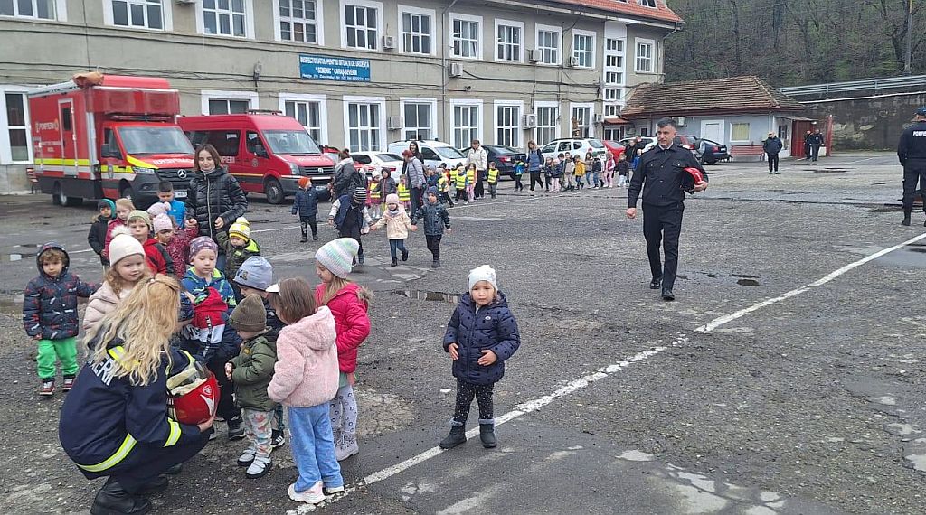 Pompierii cărășeni i-au primit în vizită pe copiii de la Grădinița cu Program Prelungit „Palatul Fermecat” din Reșița.
