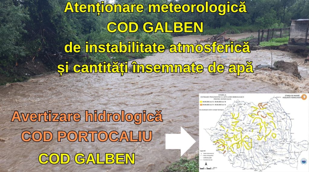 COD GALBEN de cantități însemnate de apă, valabil în data de 5 august, în întervalul orar 01:00-10:00.
