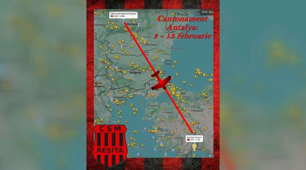 Echipa de fotbal CSM Reșița a plecat într-un cantonament de 11 zile în Antalya. Deplasarea s-a efectuat cu avionul, de pe aeroportul din Sibiu.