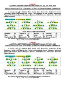 Municipiul Caransebeș a făcut public graficul de colectare a deșeurilor menajere și selective pentru anul 2026.