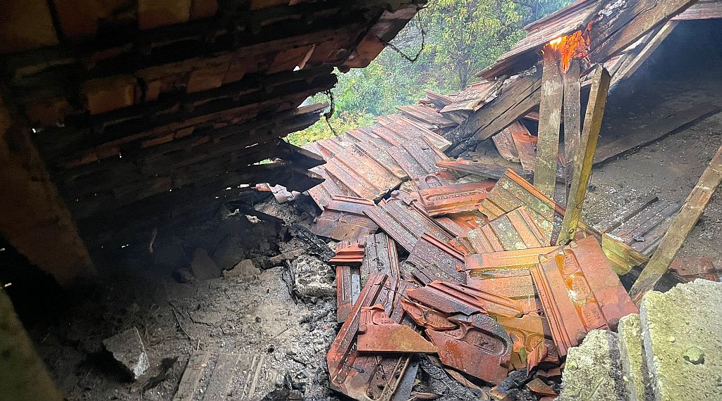 O casă din localitatea Agadici a fost cuprinsă de flăcări, în această dimineață, în jurul orei 09.00.