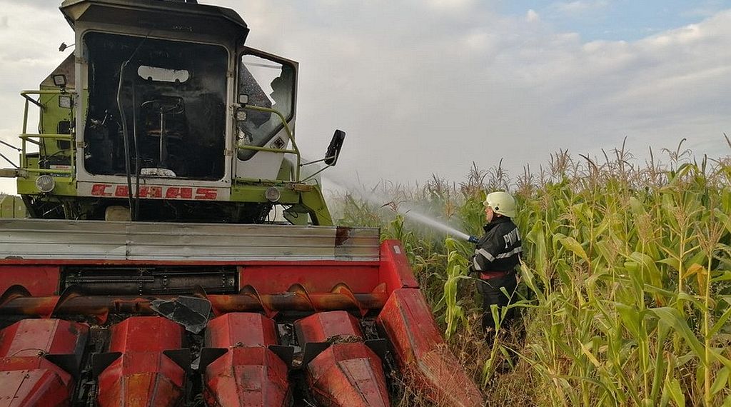 În urma incendiului, au ars combina în proporție de 10-15% și 1 ha de lan de grâu.