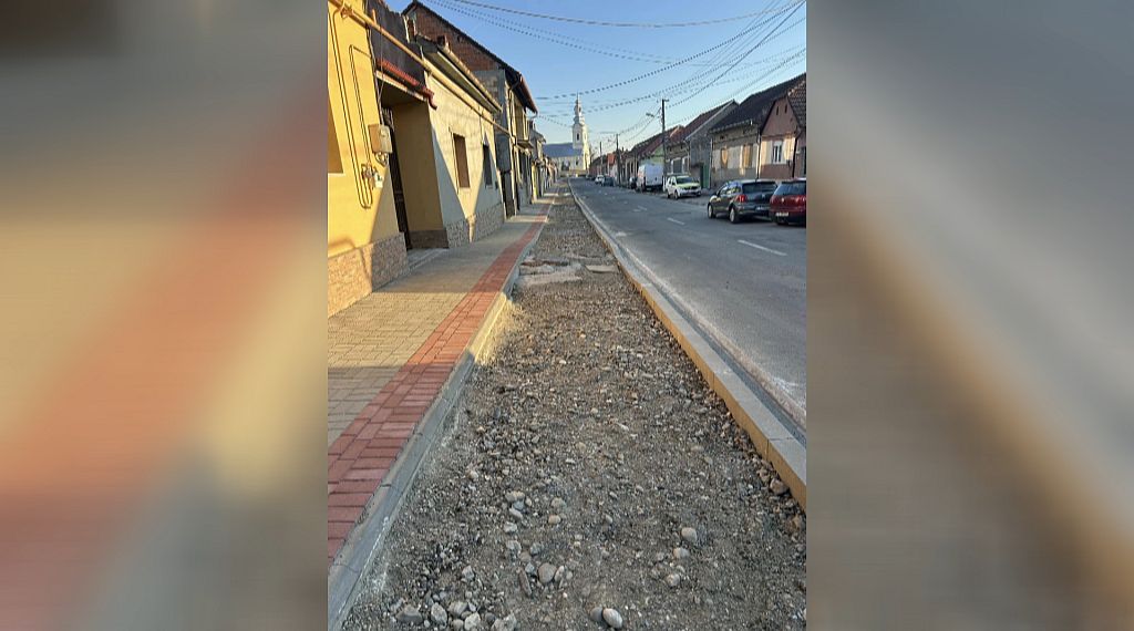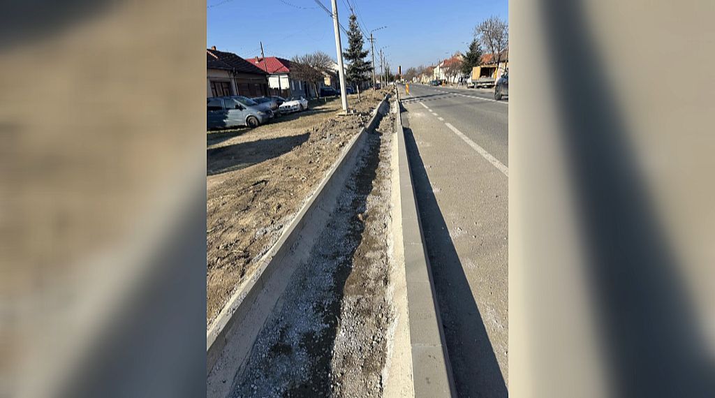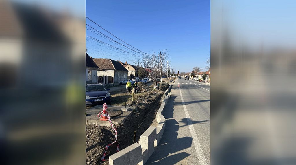 Acolo s-au montat bordurile pe marginea carosabilului și se lucrează la umplerea cu balast și pregătirea pentru turnarea asfaltului.