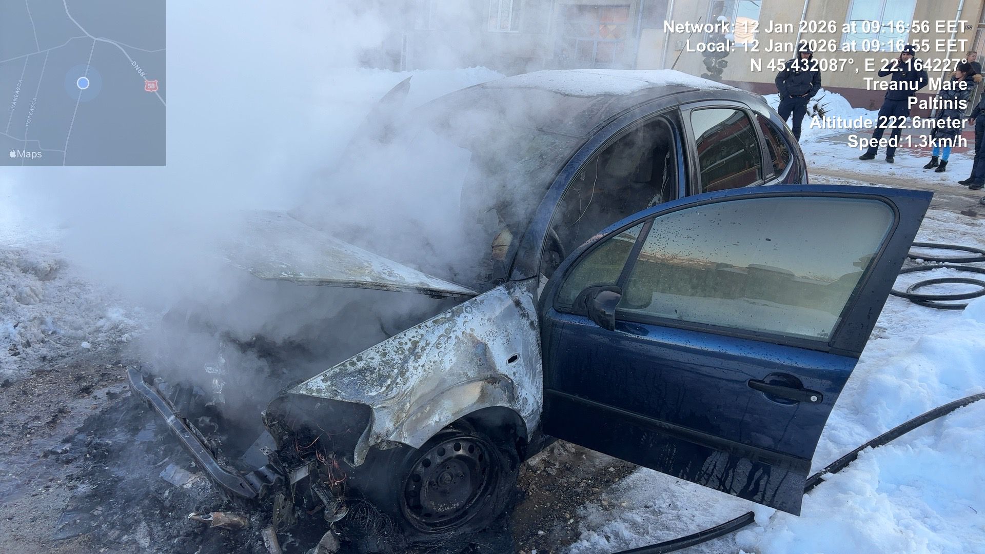 În urma evenimentului, autoturismul a ars în proporție de 50%, cauza probabilă a incendiului fiind un scurtcircuit electric la compartimentul motor.