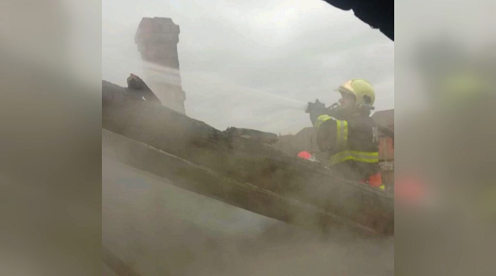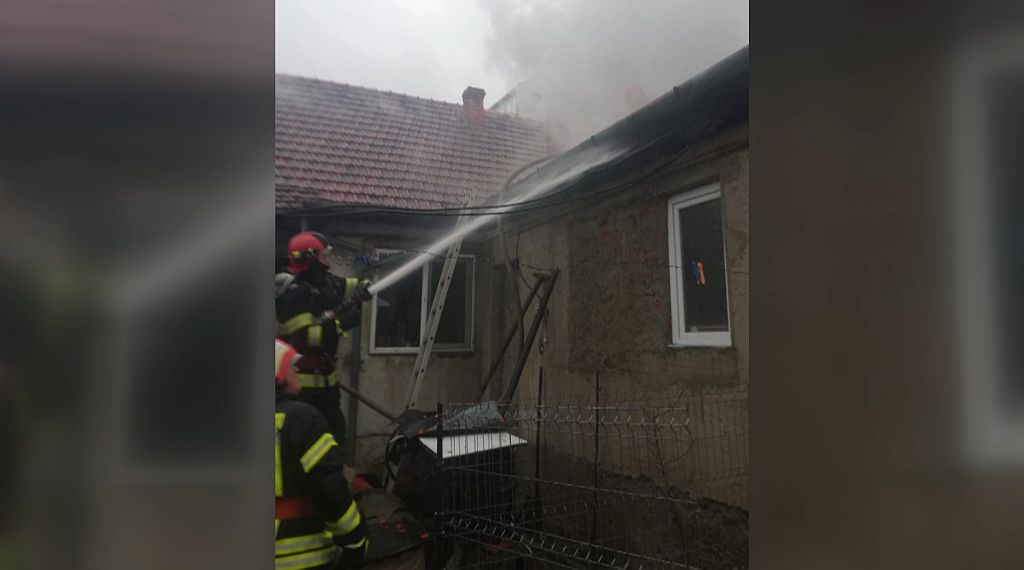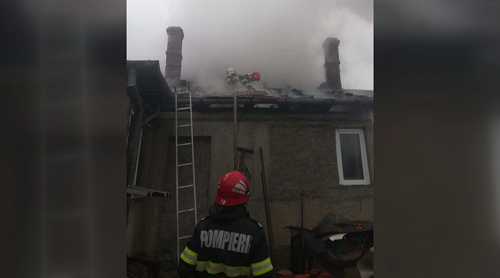 În urma incendiului au ars aproximativ 40 mp din acoperișul casei.