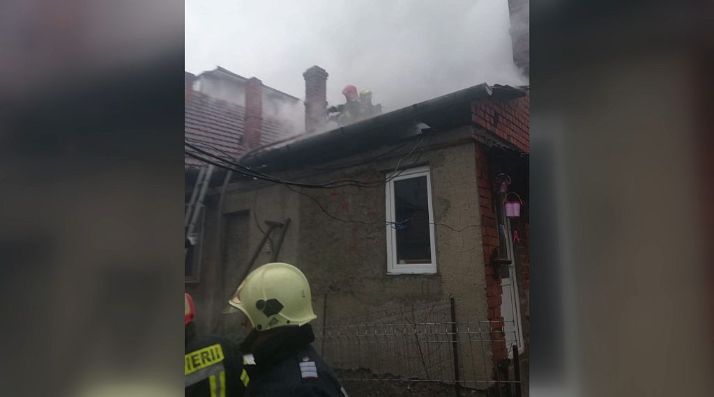 Un incendiu violent a izbucnit la un coș de fum al unei case din Caransebeș.