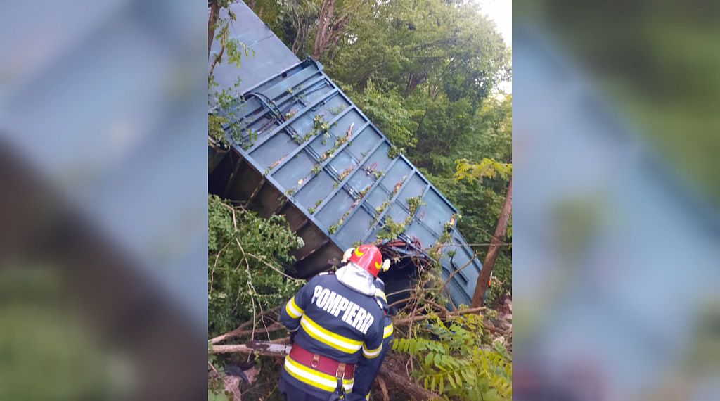 Se pare că în timp ce un bărbat conducea o autoutilitară de salubrizare, în direcția Oravița, a pierdut controlul volanului și s-a răsturnat într-o râpă.