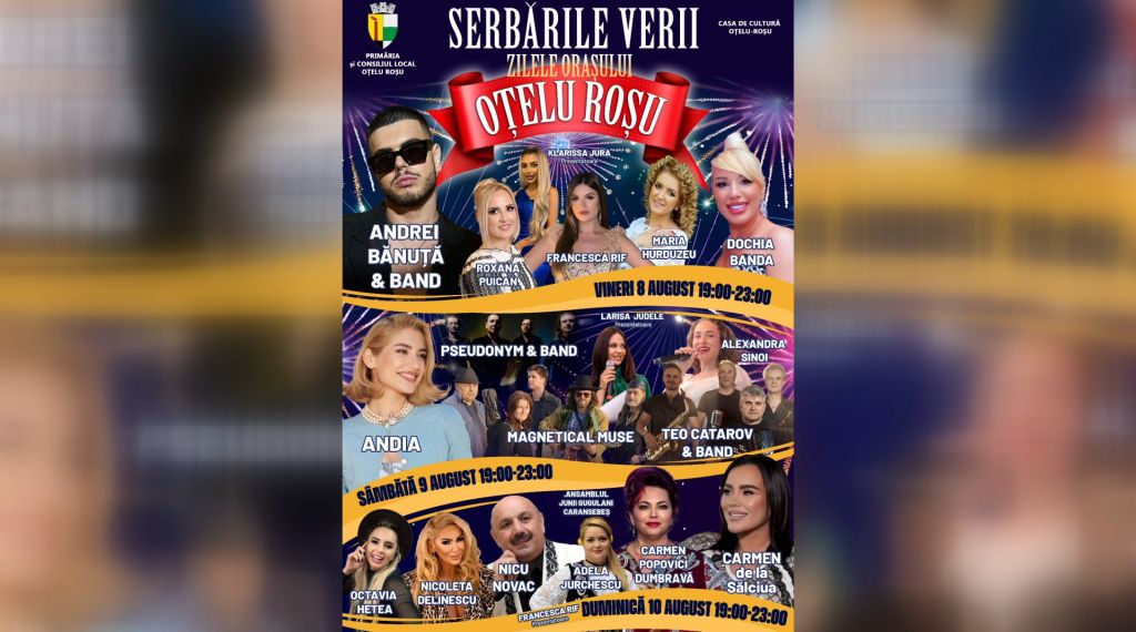 În perioada 8-10 august, centrul orașului Oțelu- Roșu va deveni centrul distracției pentru întreaga comunitate, în cadrul evenimentului „Serbările Verii – Zilele Orașului Oțelu Roșu”.