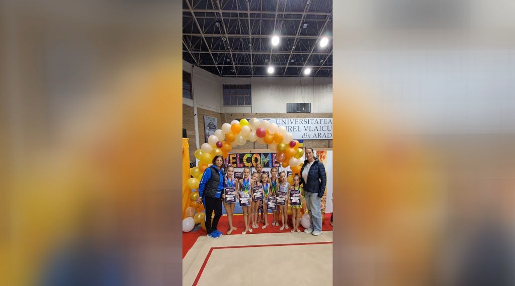 O parte dintre sportivele secției de gimnastică ritmică de la CSS Reșița au participat, în weekend, la competiția internațională Arad Trophy. Aproape 200 de gimnaste din patru țări – România, Serbia, Italia și Polonia – au luat startul la acest prestigios turneu, organizat de CSM Arad.