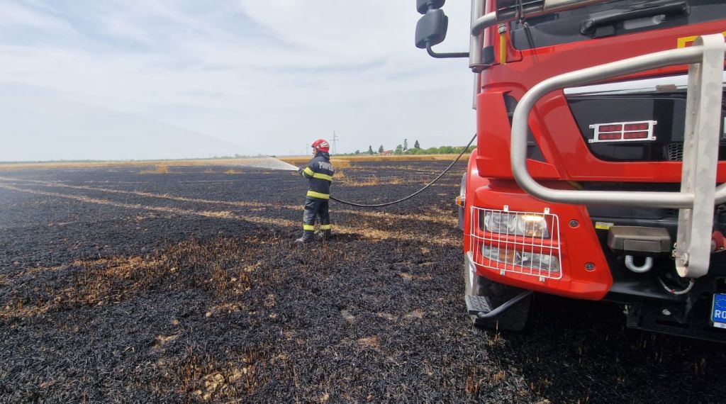 Pompierii militari cărășeni au fost solicitați să intervină în localitatea Gherteniș, pentru stingerea unui incendiu izbucnit la un lan de grâu.