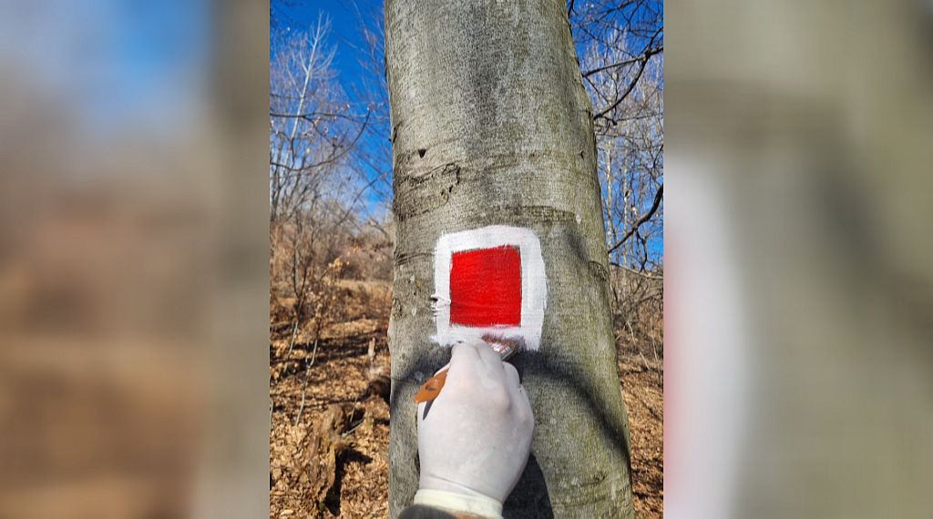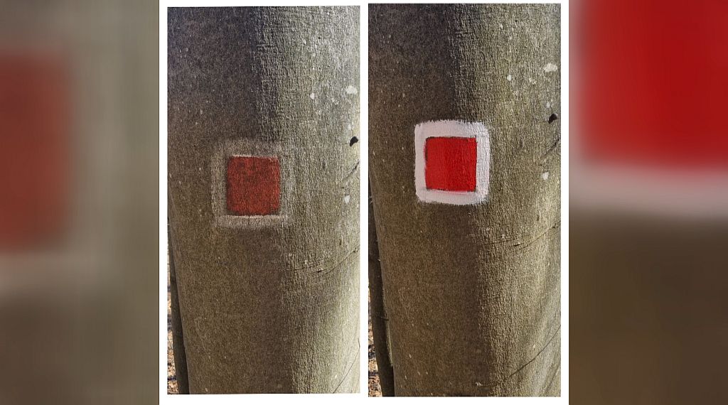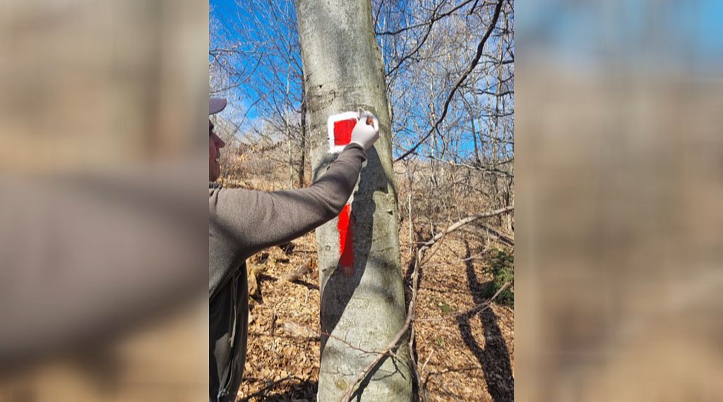Zilele acestea, rangerii au refăcut marcajele care delimitează granițele Parcului Național Cheile Nerei–Beușnița, respectiv pătratul roșu cu chenar alb.