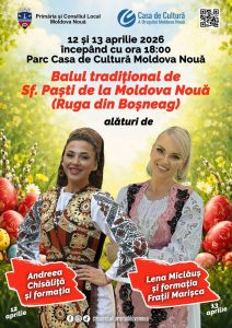 Startul petrecerii se dă duminică, 12 aprilie, începând cu ora 18.00, în zona Parcului Casei de Cultură din Moldova Nouă (Boșneag), unde atmosfera va fi animată de îndrăgita interpretă Andreea Chisăliță, alături de formația sa.