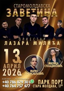 Tot luni, începând cu ora 17:30, Parcul din Moldova Veche devine gazda iubitorilor de muzică sârbească. Pe scenă vor urca Formația Lazar Milić, alături de soliștii Marko Ljubisavljević și Milica Stojadinović, aducând un plus de culoare și diversitate culturală acestui eveniment deosebit.