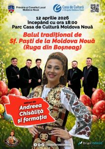 Startul petrecerii se dă duminică, 12 aprilie, începând cu ora 18.00, în zona Parcului Casei de Cultură din Moldova Nouă (Boșneag), unde atmosfera va fi animată de îndrăgita interpretă Andreea Chisăliță, alături de formația sa.