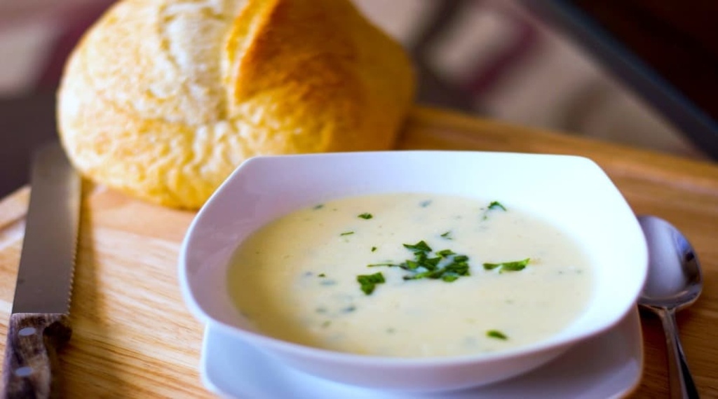 Supa se serveşte în castroane în care înainte se adaugă o felie de pâine prăjită cu parmezan pe deasupra.