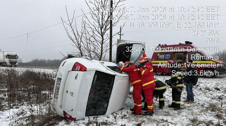 Încă un accident rutier s-a produs pe DN6, în apropierea localității Constantin Daicoviciu, unde un autoturism s-a răsturnat în afara părții carosabile. În urma impactului, mai multe persoane au rămas captive în interiorul mașinii. La fața locului au intervenit de urgență pompierii militari din Caransebeș, care au acționat pentru descarcerarea victimelor. O persoană rănită grav […]