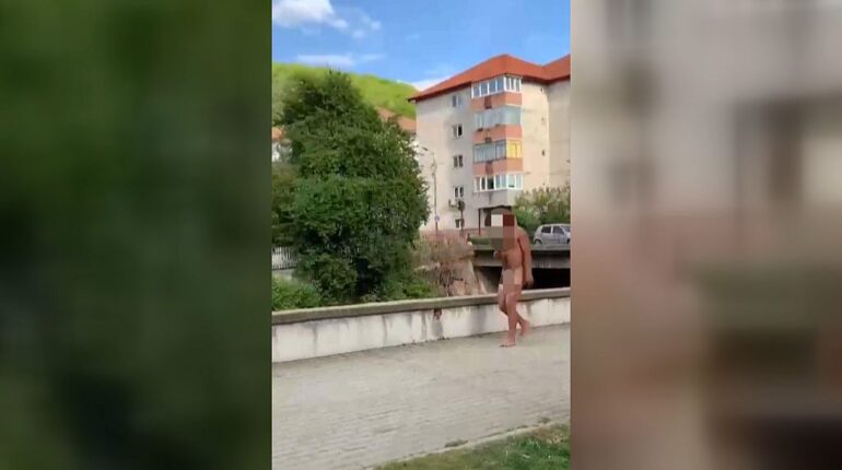 Scene incredibile surprinse la Reșița! Un tânăr se plimba gol pușcă pe stradă